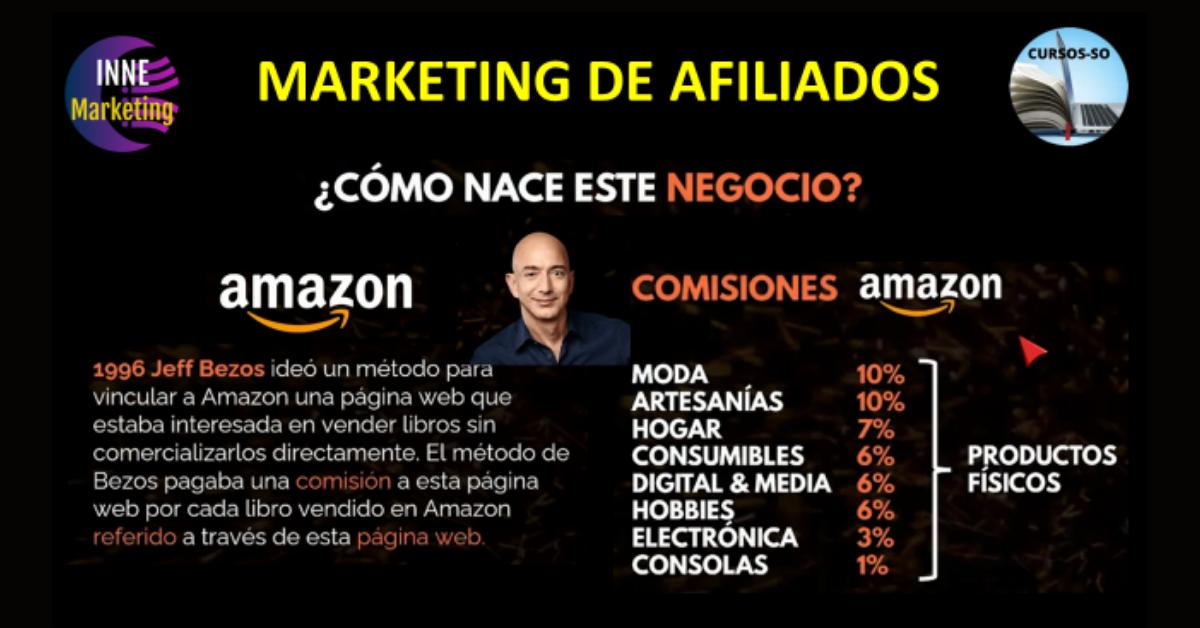Y haciendo historia, el Marketing de Afiliados fue fundado originalmente por Jeff Bezos, como se sabe, exitoso magnate multi billonario, CEO de Amazon, una de las empresas más exitosas del mundo, quienes inventaron la forma de poder comercializar libros como productos físicos de Terceros, como ventas online, promoviendo e incentivando un gran negocio entre productores, vendedores y consumidores, y sin encargarse directamente de la venta.