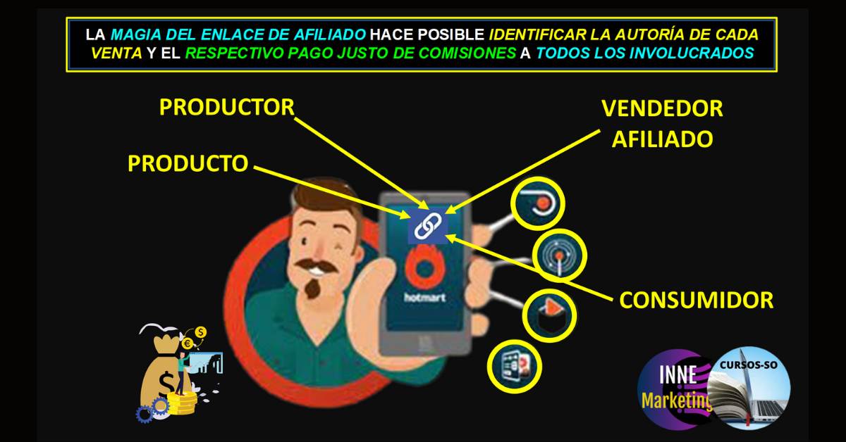 Y en éste flujo del proceso, se reflejan los pasos que hacen la magia del Enlace de seguimiento o rastreo, creado por Amazon, y que hace posible precisar e identificar a los actores de cada transacción para decidir el pago de comisiones, tanto para Productores, así como a Vendedores identificados por un código de afiliado asociado, que llega a establecer qué producto, y de qué productor, fue colocado a qué consumidor, y por parte de qué Vendedor se concretó la venta, lo que finalmente permite entregar la correspondiente comisión a cada actor.